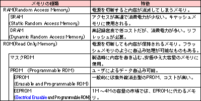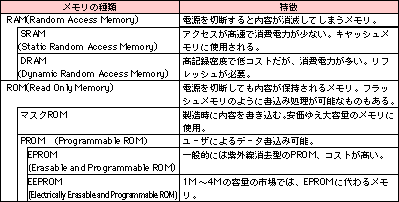 メモリ表 |