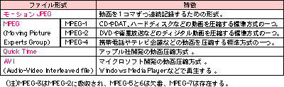 動画像のデータ形式表 |