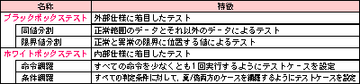 ブラックボックステスト関連の問題は比較的詳細な内容まで出題対象となっています。 |