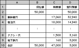ウ:正 10行目だけは合計行となり、差引残額合計は |