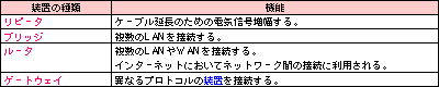 中継装置表 |